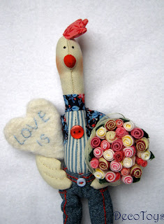 Мой авторский птиц. Рост 25 см до гребешка, джинсы 12 см в длину. Сердечко сделано в технике сухого валяния.